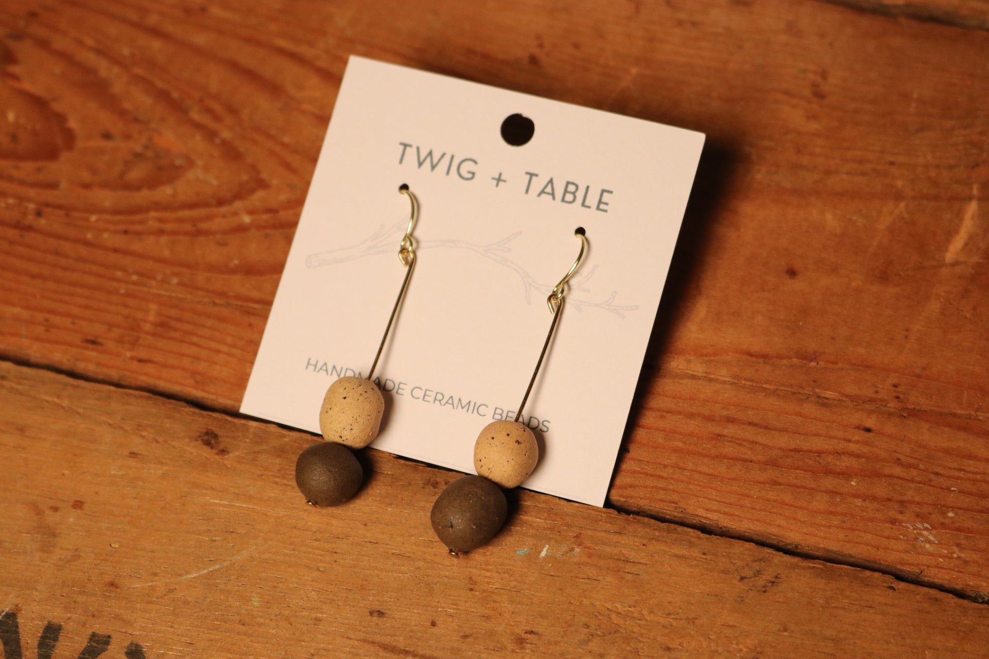 Handmade ceramic bead earrings. Featuring 14K gold platted hooks.