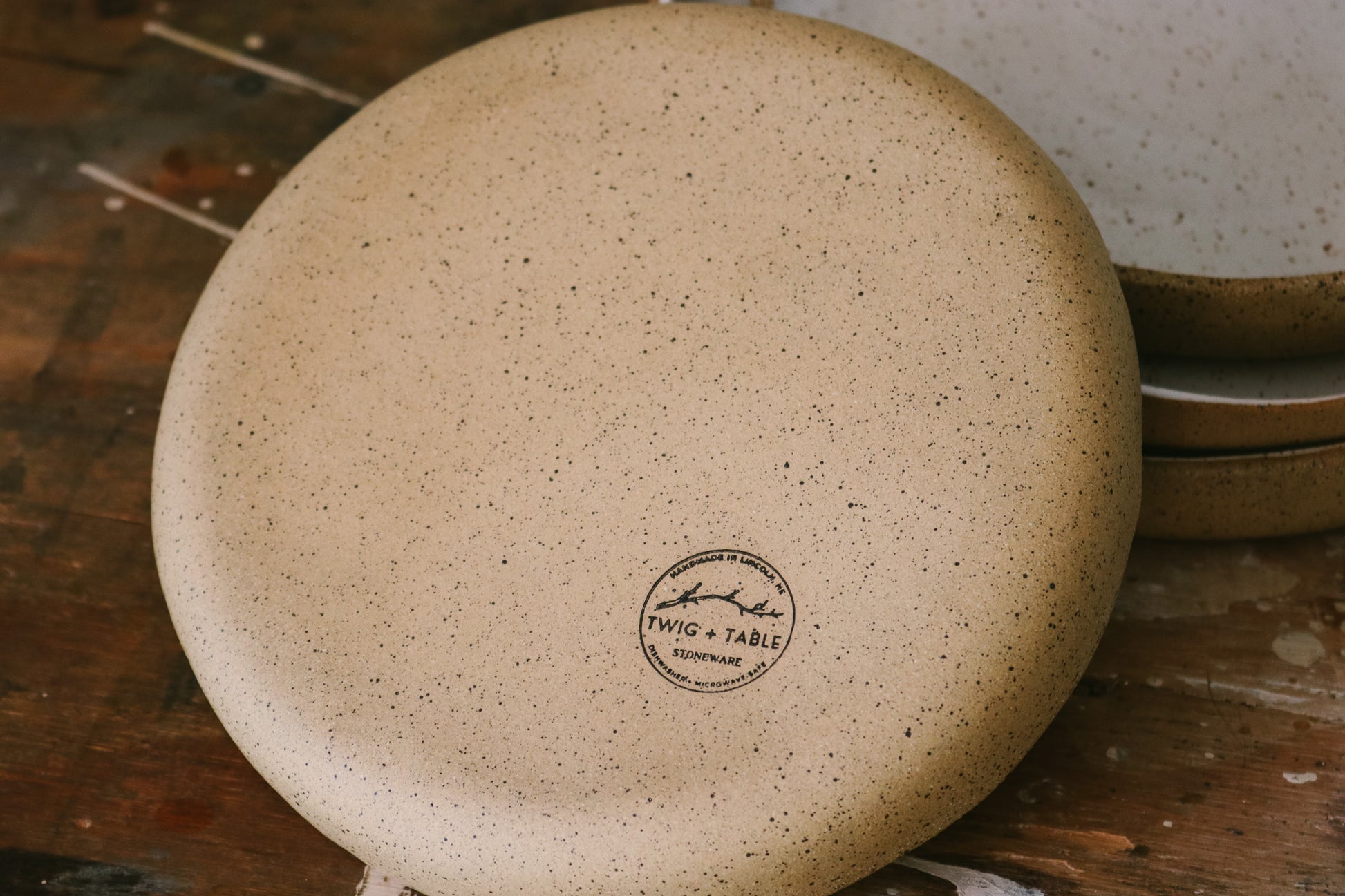 Speckled Clay. Microwave and Dishwasher safe. Handmade in Lincoln, Nebraska.