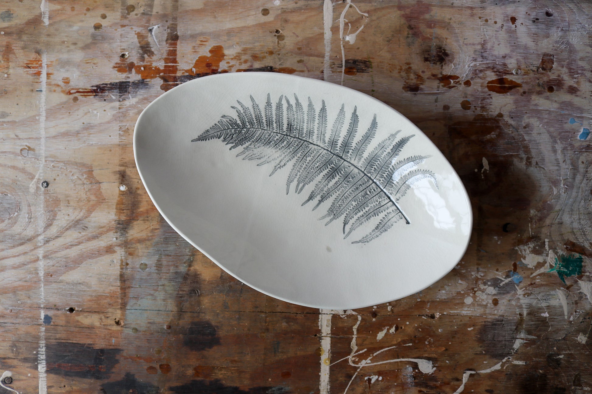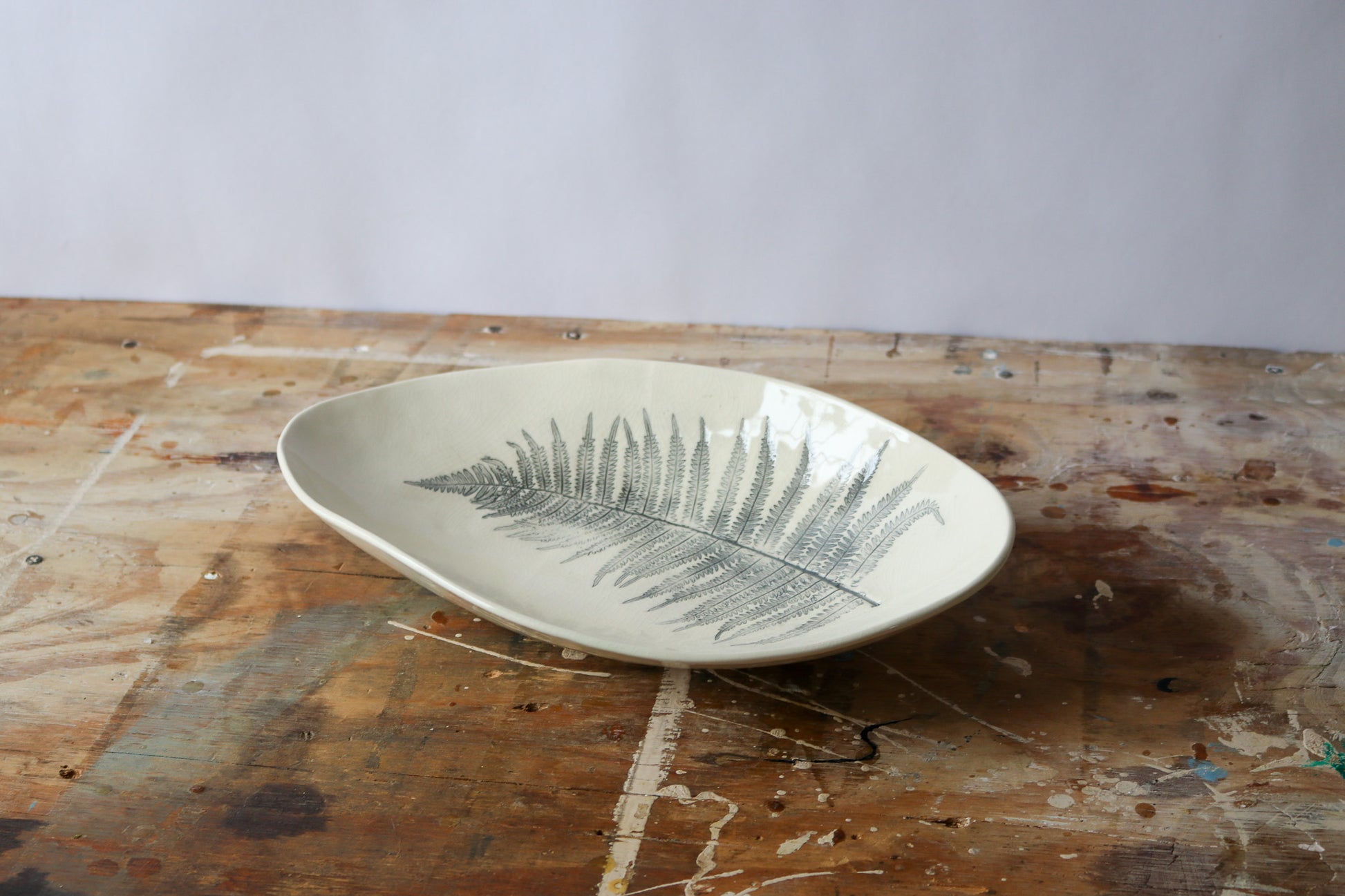 Wide Oblong Decorative Bowl - Fern Imprint